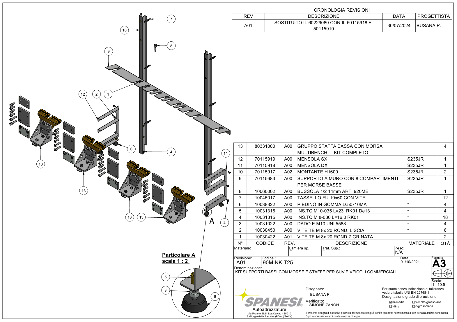 Kit of low supports with clamps and stirrups for suv (no buffers) and commercial vehicles with rack and uprights multibench - 90MINKIT25