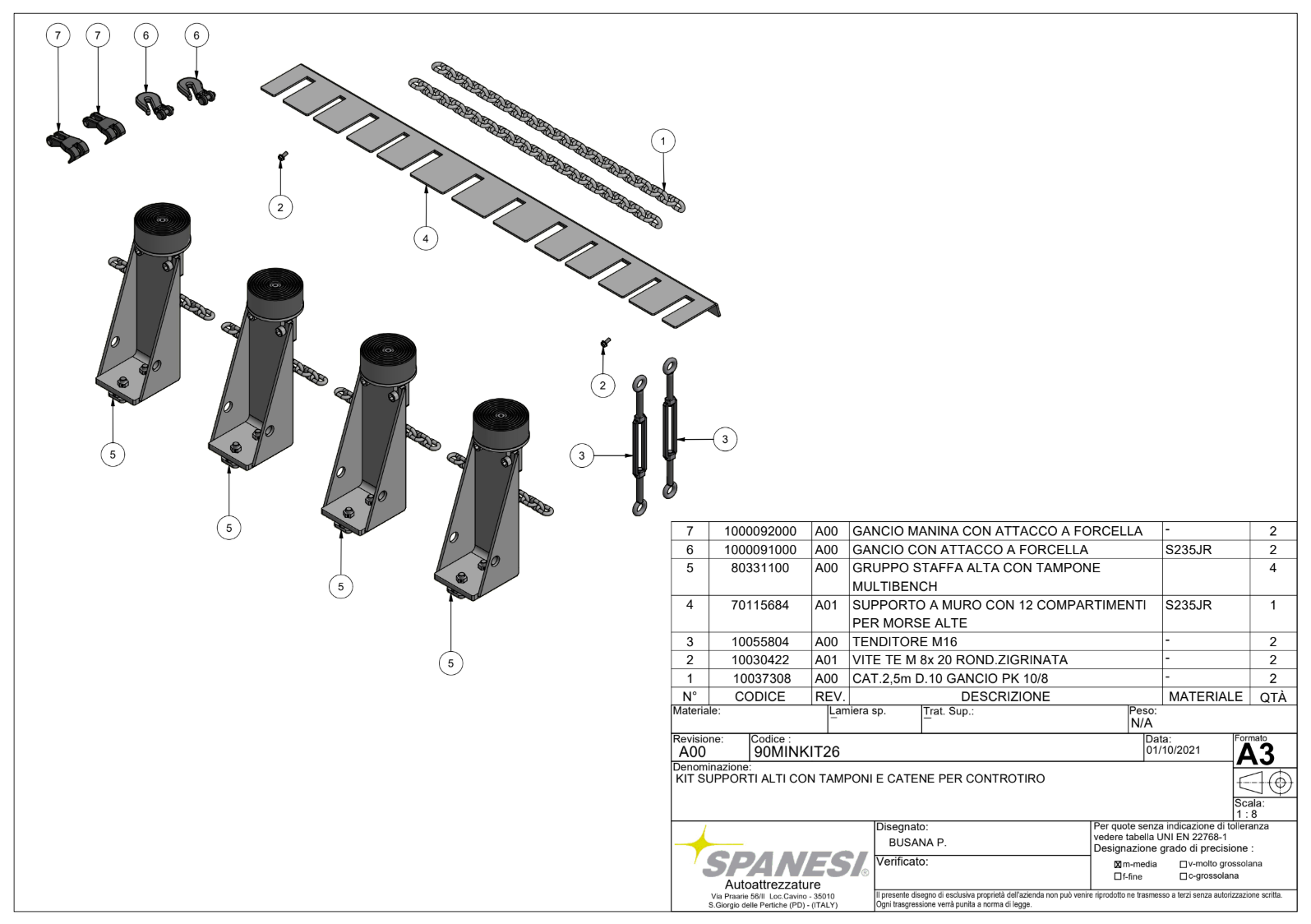 Kit of low supports with clamps and stirrups for suv (no buffers) and commercial vehicles with rack and uprights multibench - 90MINKIT25