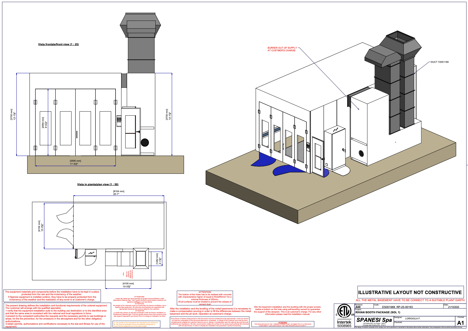 Standard Spray Booth - 4.1m width x 8.1m length x 2.9m internal height/ 3.7m external height